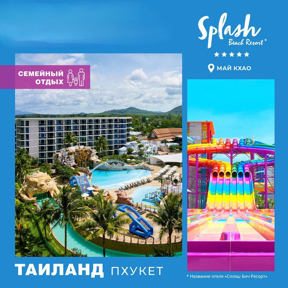 🏝 Splash Beach Resort расположен прямо у пляжа Май Кхао, в северной части Пхукета. Этот курорт создан для семейного отдыха и активного досуга: на территории есть собственный аквапарк, бассейны, игровые зоны и множество развлечений для детей и взрослых.