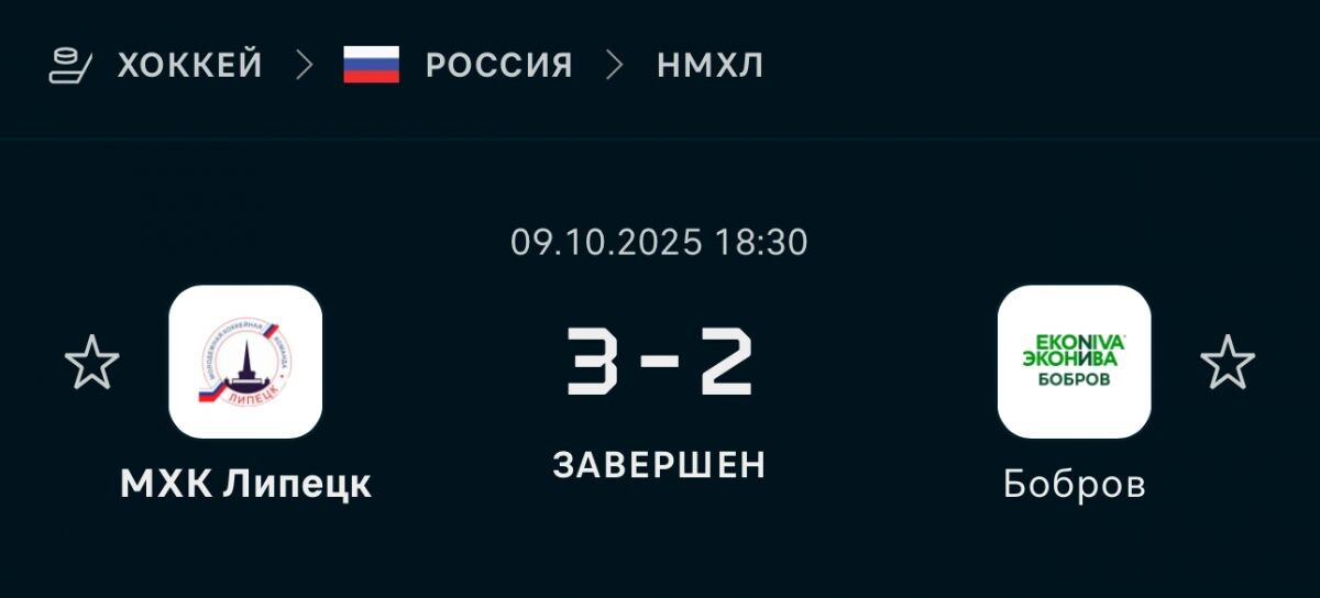 Состоялся матч первенства Национальной молодежной хоккейной лиги между командами «МХК Липецк» и «Бобров», в котором со счетом 3:2 победу одержали хоккеисты из Липецка. Первый период ознаменовался результативностью: на 8-й минуте Завалихин открыл счет, отправив шайбу в ворота липчан, однако уже спустя несколько секунд гости увеличили свое преимущество благодаря точному броску Русанова. На 11-й минуте того же периода игрок «МХК Липецк» Ричард сократил отставание своей команды, забив первую шайбу в ворота «Боброва». Во втором периоде инициатива полностью перешла к липчанам: на первой минуте Стратинский сравнял счет, а на 6-й минуте Иванов вывел свою команду вперед, установив окончательный результат. В течение третьего периода на площадке шла равная борьба, однако ни одной из команд не удалось поразить ворота соперника. По итогам встречи «МХК Липецк» занимает третью позицию в турнирной таблице, в то время как «Бобров» располагается на 11-й строчке. Следующая игра запланирована на 10 октябр