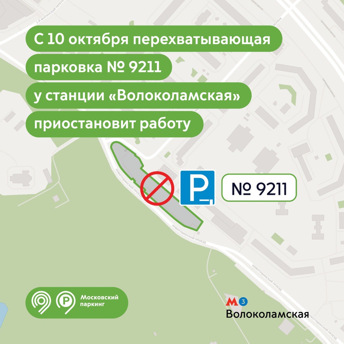 🚘 Перехватывающая парковка №9211 у станции метро "Волоколамская" приостановила работу с сегодняшнего дня.