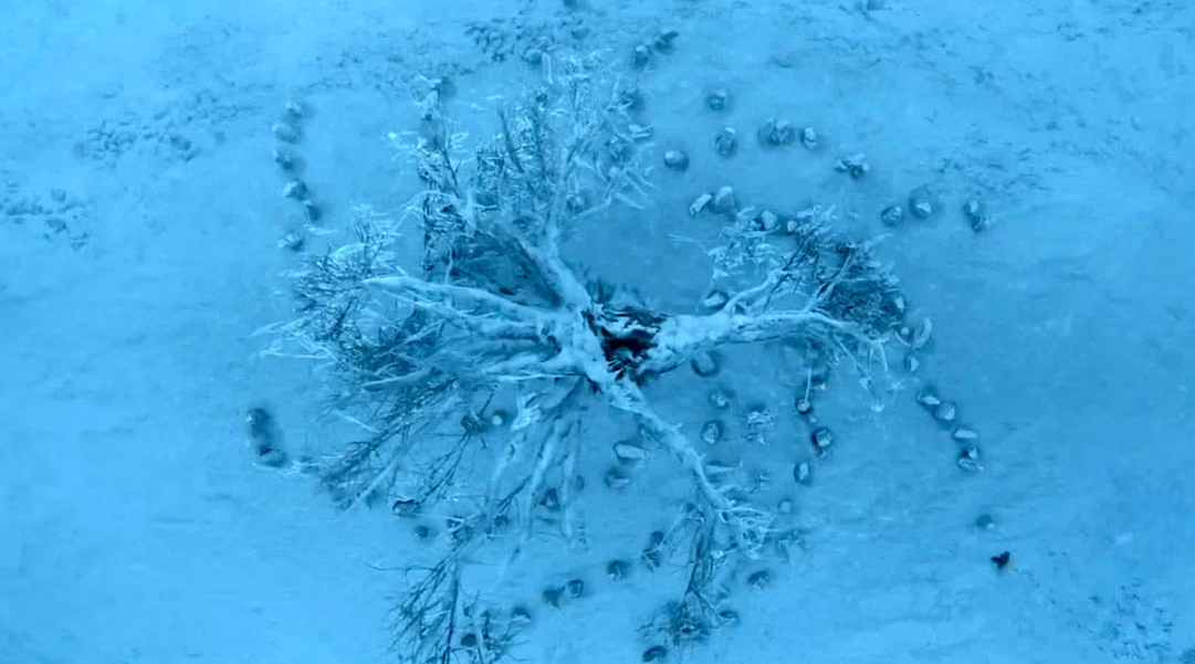 Игра Престолов" - сериал, полный магии и пророчеств, и у каждой детали есть скрытый смысл. Особенно у спиралей Белых ходоков, что появлялись снова и снова. Этот зловещий знак породил множество фанатских теорий и стал тонким предвестником надвигающейся Армии Мёртвых, с которой людям предстояло столкнуться в восьмом сезоне. Однако истинное значение символа кроется в его богатой истории. Впервые он появляется в самом первом эпизоде, когда ещё никто не догадывался, что на самом деле скрывается за Стеной. Дозорный Ночного Дозора находит множество тел, выложенных по кругу. Хотя это ещё не та самая спираль, зрелище было достаточно жутким, чтобы запомниться как один из первых следов Белых Ходоков. В третьем эпизоде третьего сезона Джон Сноу и отряд Одичалых видят спираль из мёртвых лошадей в лесу. Манс Налётчик буднично комментирует этот узор, давая понять, что за Стеной, в землях Ходоков, такое - не редкость. В первой серии восьмого сезона символ появляется вновь: юного лорда Неда Амбера нахо