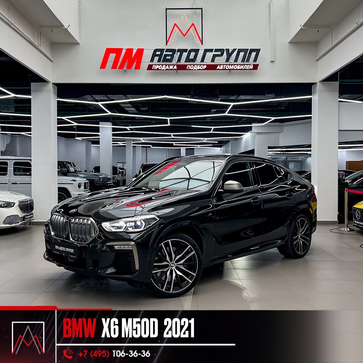 Самая мощная дизельная версия купеобразного кроссовера. Особая комплектация M-Special с огромным количеством опций, включая инкрустацию карбона и хрустальные органы управления. Оригинальный пробег, заводской окрас + кузов в полиуретане, технически - без нареканий. BMW X6 3.0d (400 л.с.) xDrive, 2021 года, с пробегом 91 700 км!