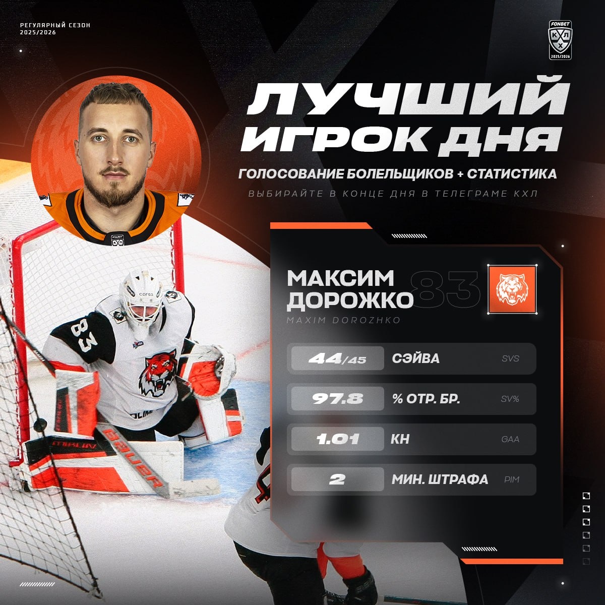 Очередные геройства Максима Дорожко 🐯 на 40+ сэйвов. Кто-нибудь удивлен? Мы нет.