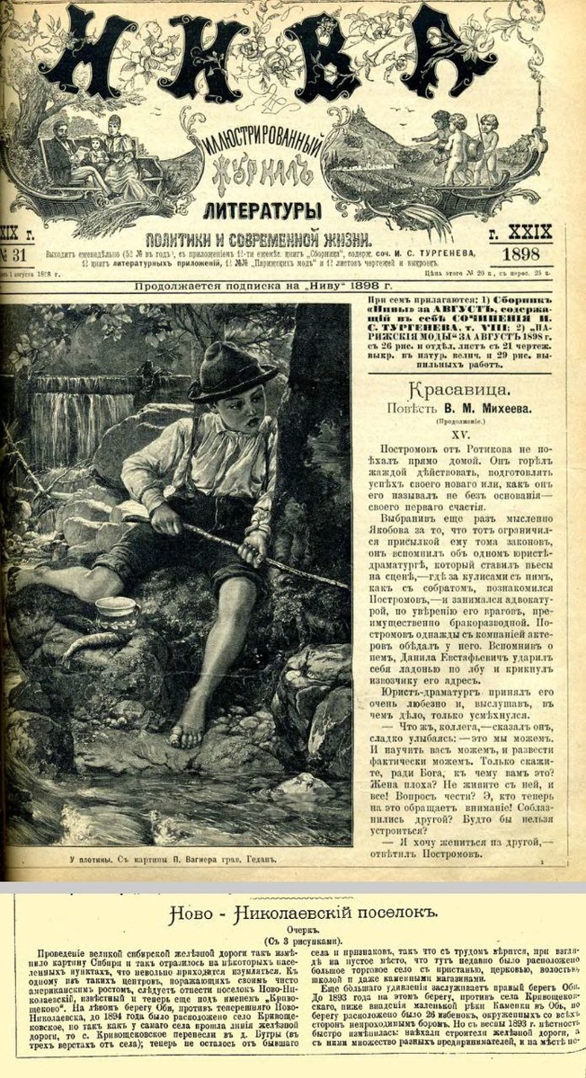 Первое упоминание Ново-Николаевского (еще) поселка в печати - Журнал "Нива" №31 1898г