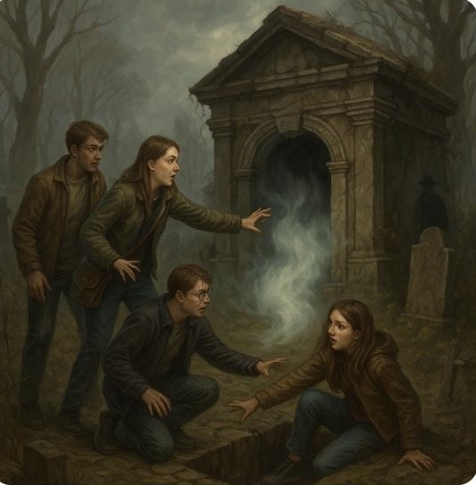 Глава: Дом шутит, лес слушает Дом уже тихо шумел жизнью, когда гости наконец вошли внутрь. Светлана накрыла на стол — запах жаркого, свежего хлеба и запечённых яблок с корицей мгновенно развеял остатки лесного ужаса. На длинном деревянном столе стояли румяные пирожки, миска с салатом, суп в старинной эмалированной кастрюле, да ещё чугунок картошки с грибами. Мракобус важно уселся у камина, как будто охранял трапезу. — Мам, — сказала Арина, садясь рядом, — это пахнет как в детстве. — А вот и хорошо, — ответила Светлана. — Дом любит, когда пахнет едой, особенно хлебом. Тогда он добрый. Костя и Димка ели с аппетитом, но всё время переглядывались. — А это правда... — начал Димка, — что тот лес... ну, не обычный? Светлана подняла взгляд. — А вы как думаете? Обычный лес не выпускает запах ладана, и из него не доносится шёпот на старославянском. Ребята одновременно сглотнули. Мракобус фыркнул и добавил: — И не стоит туда ночью возвращаться. Лес не любит, когда по нему топают с криками «ой, г