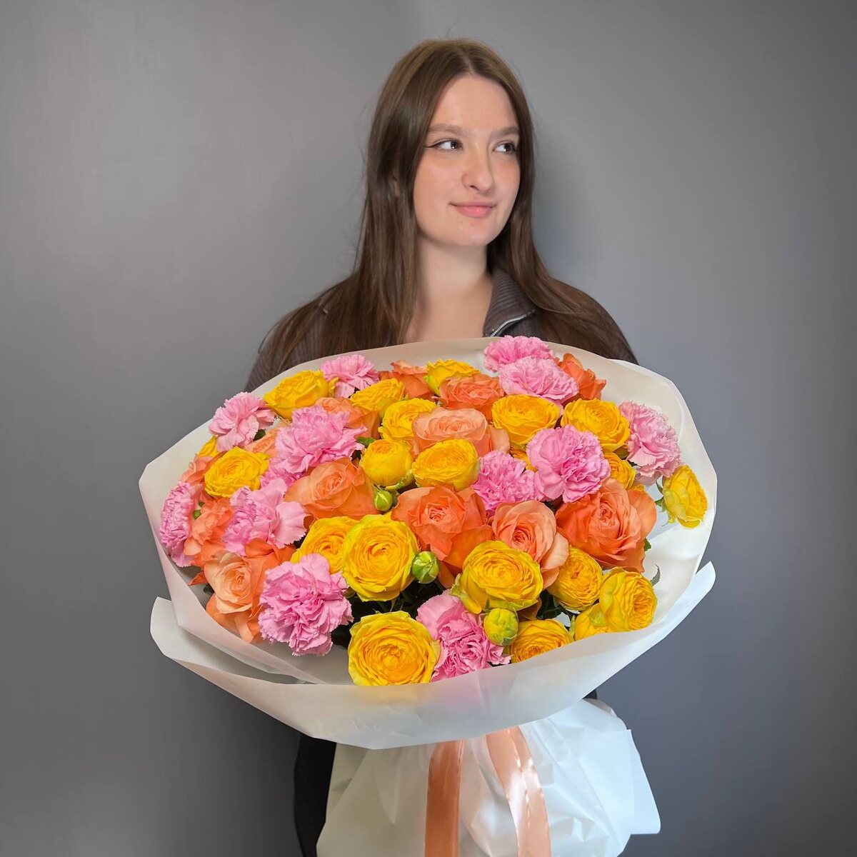 На фото наш букет «Скитлс-трянка» Рассмотреть поближе Недавно у нас произошла сериальная ситуация. Клиент заказал роскошный букет для девушки, в записке намекнул на чувства. Наш курьер доставил подарок вовремя, дверь открыла получательница. Окинула взглядом букет, прочитала записку. Выражение лица мгновенно изменилось. — Спасибо за доставку, но букет я принять не могу. Увезите его обратно, — попросила девушка. На возражения курьера, что это невозможно, добавила, что передаст букет подруге. Обычно наши сотрудники очень тактичны и не вмешиваются в чужие дела (только если клиенты сами не провоцируют расспросы). Но тут удержаться было сложно. Оказывается, девушка замужем за другим человеком, а цветы прислал назойливый отец бывшего парня. Курьер был шокирован (а какая реакция была бы уместнее?). Наши менеджеры доложили клиенту о вручении букета, после чего тот попросил фотографию получательницы вместе с цветами. Девушка и так едва согласилась принять букет, не говоря уж о фотосессии с улы