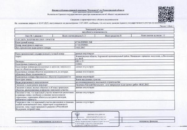 Название: Лот№6 Подвергнутое аресту Кировским РОСП по и/п 217703/24/47026-ИП и принадлежащее должнику Администрация МО Назиевское городское поселение Кировского МР ЛО заложенное имущество: земельный участок общ.пл. 600 кв.м. кадастровый № 47:16:0509001:268, расположенный по адресу: ЛО, Кировский район, Назиевское г.п., д. Васильково, уч. 1б. Канал: Госземля Ленинградская область Область: обл Ленинградская Кировский район Район: Назиевское г.п. Населенный пункт: д. Васильково, уч. 1б. Локация: Смотреть на карте ВРИ: Производственная деятельность Кадастровый номер: 47:16:0509001:268 Кадастровая стоимость: 310842.00 Вид сделки: Продажа Площадь: 600 м² Начальная цена: 283360.00 руб. Дата завершения: 24.10.2025 Подробнее: ГИС ТОРГИ #госземля #земляотгосударства #земля #земельныйучасток #земельныеторги #торги #аукцион #продажаземли #продажа #ленинградскаяобласть
