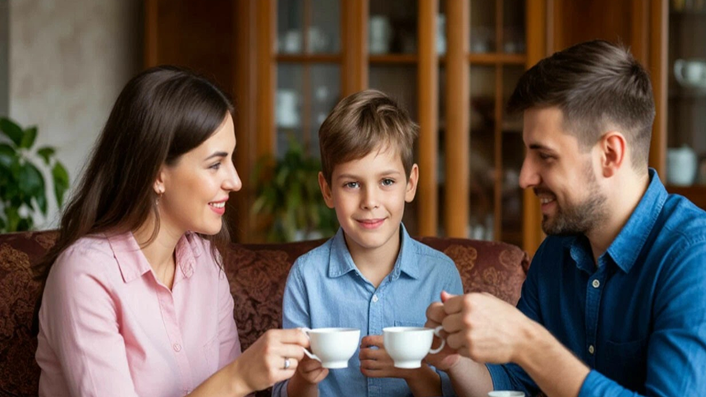 Алексей сидел на диване, рядом с ним — женщина лет сорока, с уставшим лицом и тёплыми глазами. А перед ними стоял Максим, держа в руках чашку какао.