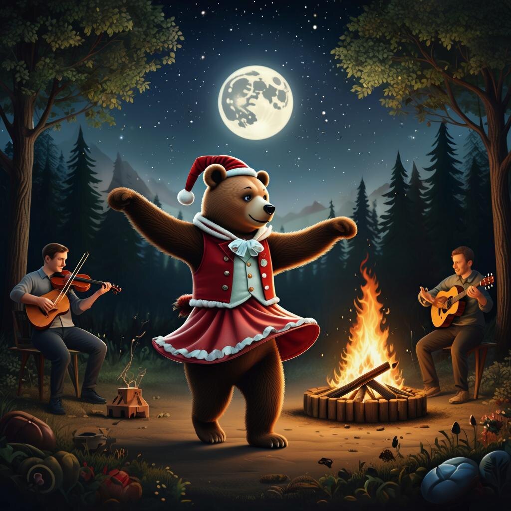 Представьте себе могучего медведя, который крутится в ритме музыки, показывая, что даже самые грозные животные умеют веселиться и наслаждаться жизнью.