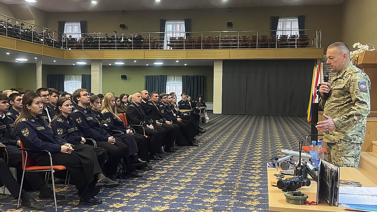 На встрече студентам были показаны американские дроны, рации, предметы вооружения и амуниции, в том числе настоящие бронежилеты, каждый весом 18 кг. Вместе с оружием каждый боец носит более 50 кг, это практически вес целого человека. Не все выдерживают такую нагрузку, нередки случаи, когда молодые парни буквально падали от усталости.