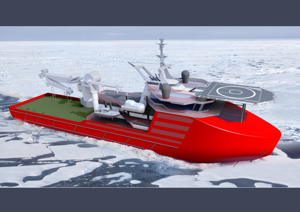 Объединенная судостроительная корпорация (ОСК) представила новую концептуальную разработку ‒ судно «Спрут» для подводно-технических работ в арктических морях, способное выполнять широкий спектр задач на глубинах до 2000 метров.