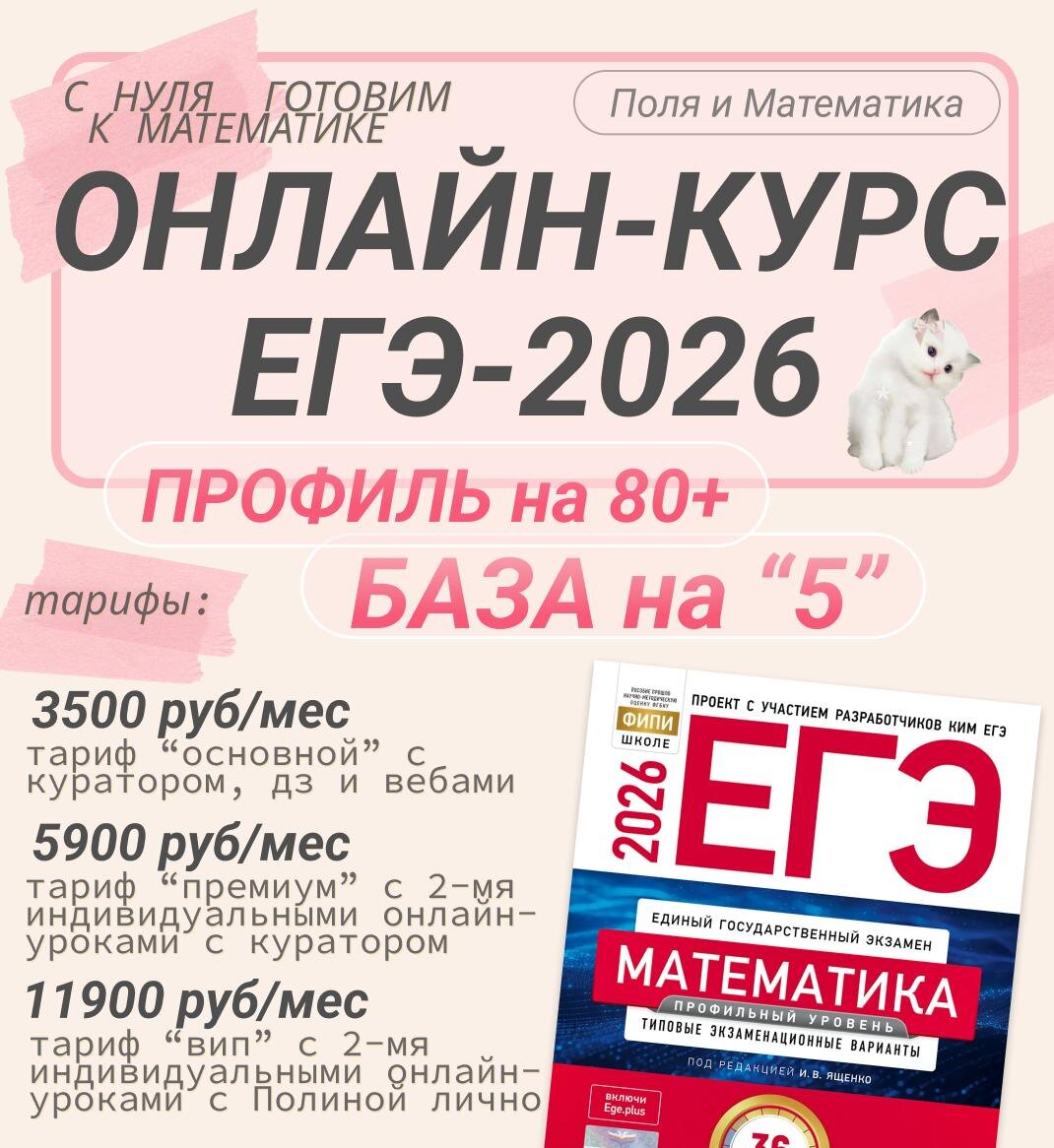 ГОДОВОЙ КУРС ЕГЭ-2026 — набор открыт (База и Профиль) ⚠️ Записи уроков + тесты к каждому уроку, раз в 2 недели пробник, поддержка куратора, мои включения. Можно присоединиться сейчас и догнать предыдущие недели по записям. Подойдёт даже если с НУЛЯ. ‼️ Тарифы (помесячно): 🤩 Базовый — 3 500 ₽ Записи, вебы, тесты, дз, платформа, прииложение, УЧЕБНИКИ, пробники, чат с куратором, канал курса. 🤩 Premium — 5 900 ₽ Всё из базового + приоритетная проверка и 2 личных кураторских разбора в месяц. 🤩 VIP — 11 900 ₽ 2 личных занятия со мной в месяц + индивидуальная подборка материалов. Мест огранииченно. чем больше месяцев выбираете, тем больше скидка Выгодно оплатить вперёд: • 2 месяца −5% • 3 месяца −8% • 6 месяцев −10% Пиши КУРС в личку @poleinehelp или жми по ссылке — подберём тариф и откроем доступ сегодня ☺️💞