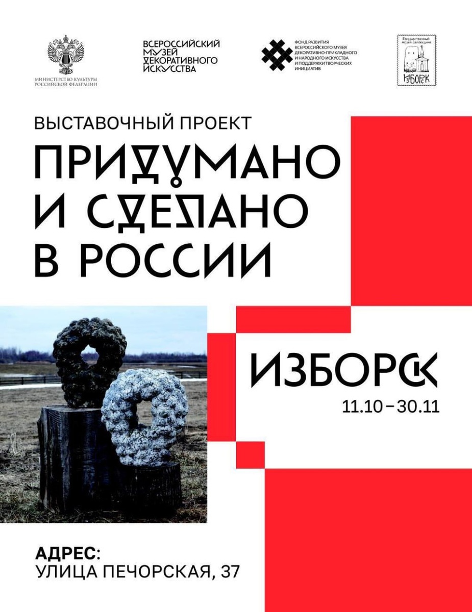 Выставка «Придумано и сделано в России» 🇷🇺 ✨ Сегодня в музее-заповеднике «Изборск» начнётся передвижная выставка победителей и номинантов IV Всероссийского конкурса-биеннале «Придумано и сделано в России». Этот масштабный проект, организованный Всероссийским музеем декоративного искусства, направлен на выявление и поддержку талантливых дизайнеров, чьи работы формируют наследие XXI века 💪 🗣 «Выставка не только демонстрирует мастерство и эстетику, но и отражает современные тренды — от тактильных решений и экологичных материалов до новых подходов к потреблению и осмыслению локальной идентичности. Каждый проект — это ответ на вызовы времени в области предметного дизайна», — подчёркивает пресс-служба Всероссийского музея декоративного искусства. Кроме того, на выставке будут представлены предметы начала XX века из фондов Всероссийского музея декоративного искусства. 📆 Открытие выставки: 10 октября в 15:00. 📍 Адрес: Изборск, ул. Печорская, 37. Оставайтесь с нами #НашаПсковскаяоб
