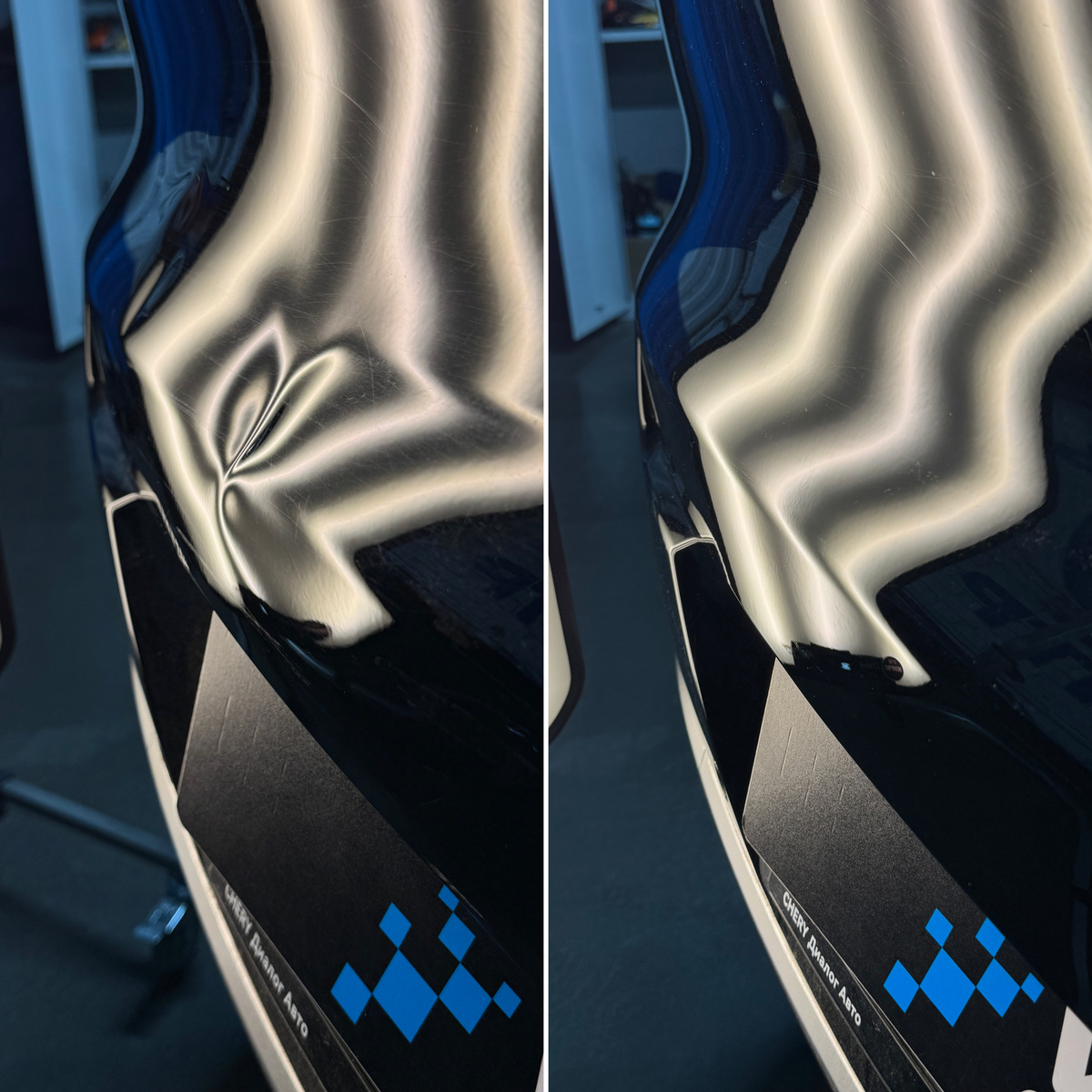 Ремонт необычных вмятин на крышке багажника Chery Tiggo 7 pro max. Клиент, принимая свой автомобиль после ремонта, был в восторге и сказал что «за данный ремонт и оглашенной суммы было мало!» Получается, мы превзошли его ожидания. Ремонт был не особо сложный, но ребро и отрицательная плоскость детали создавали неудобства. Например, при оценке в другом сервисе, клиенту сказали что без сварки не обойтись. Наш мастер проявил сноровку и выполнил задачу на 5+!