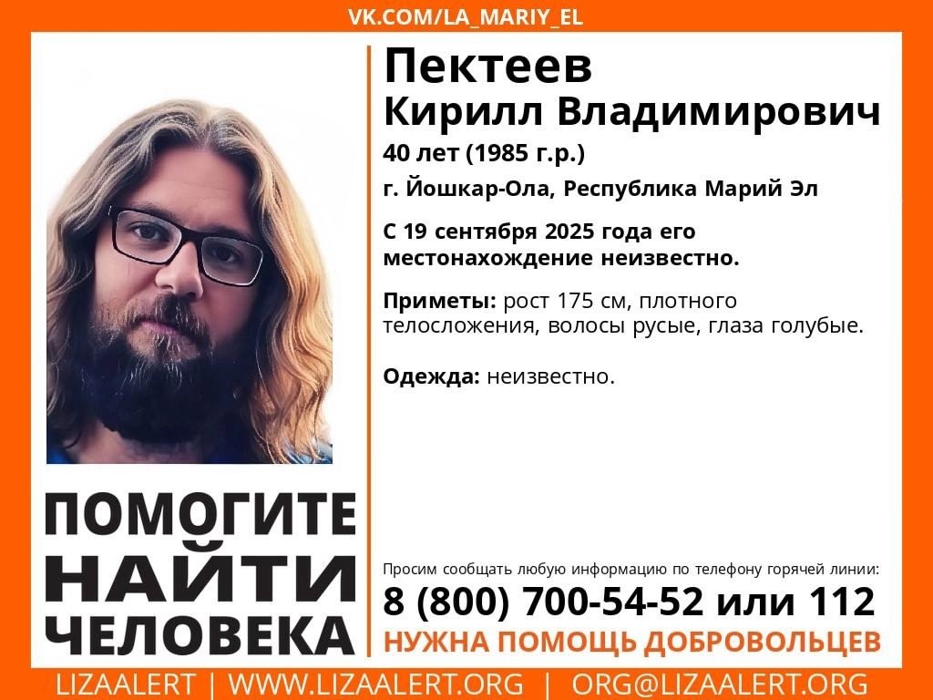 ‼️В Йошкар-Оле ищут пропавшего 40-летнего Кирилла Пектеева.