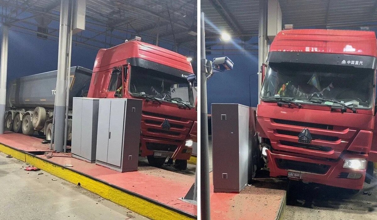 Грузовик протаранил пункт оплаты на трассе под Астаной (ВИДЕО)