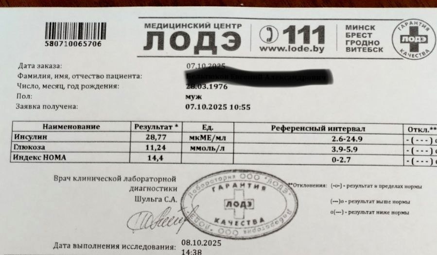 Ещё один интересный случай сахарного диабета! Мужчина 49 лет... Жаловался на.... внимание...стали выпадать зубы. Стоматолог после осмотра сказал, что с организмом что-то не то, ибо челюсть уже пострадала. Пошли сдавать анализы, а там ядрёный диабет... На вопрос: какие жалобы( плохой сон, усталость, ночные мочеиспускания) - ничего нет... Скорее всего диабет уже несколько лет и организм привык и как-то адаптировался... При проверке инсулина(чтобы понять резерв поджелудочной) видим, что инсулина выше крыши, но его не хватает, чтобы глюкозу расписать в клетки... ХОМА - 14... Также обратите внимание на липиды: триглицериды выше 9, такого я и сам не встречал... Сразу подумал на алкоголь, оказался прав. Каждый день после ужина обильного алкоголь. Ну такое, социальное пьянство. В итоге, мужчина настроен на работу и излечение, изменения в привычках. Посмотрим, уже начали... Вот и думайте 😂👍