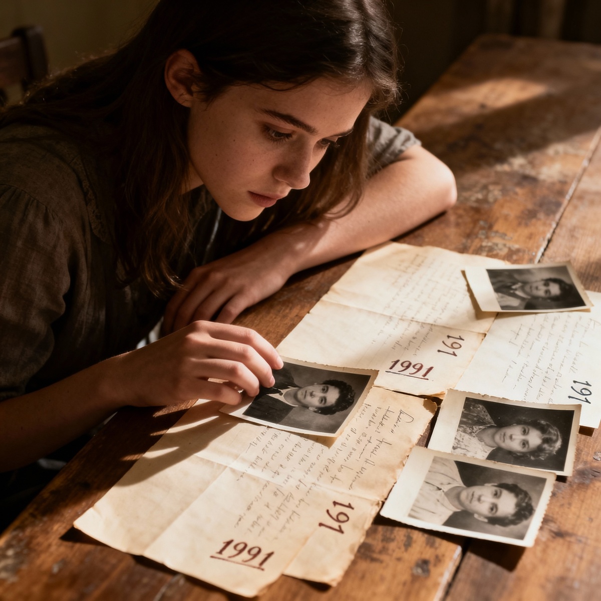 Оля открыла ящик стола почти машинально. Документы, старые фотографии, записные книжки. Она перебирала бумаги, когда наткнулась на потрёпанный конверт, засунутый глубоко в дальний угол. На конверте не было никаких надписей. Внутри лежало несколько пожелтевших листов — письма, написанные неровным почерком.