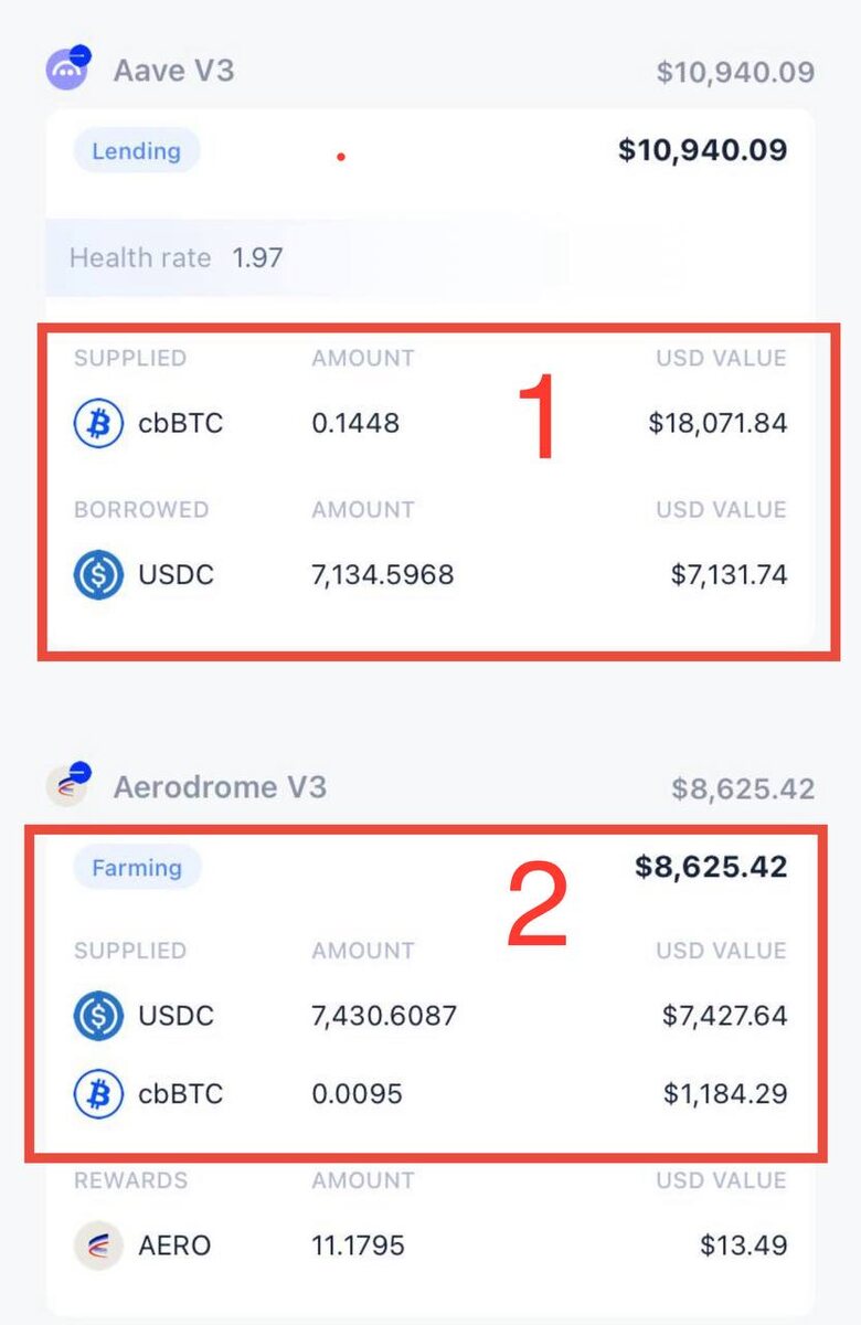 Как я уже сказал, на этой неделе начал свою работу Форум практиков по крипте. Это сообщество заточено чисто на практику — эксперты делятся идеями и стратегиями в дефай и дропхантинге, участники берут то, что им подходит. Вместе обсуждаем результаты, помогаем друг другу. Попасть сюда могут только выпускники курса «Большая крипта». На картинке — наглядный пример силы DeFi 💪 Одна из стратегий. Постараюсь объяснить, чтобы было понятно. Сверху (1) — позиция в лендинге: взят заём на 7 000 USDC под залог биткоина. За время удержания позиции по займу начислились проценты по кредиту — $134 (итого к возврату $7 134). Ниже (2) — позиция в пуле, текущая стоимость которой уже $8 625. 🚀 После вычета долга чистая прибыль составляет около $1 500 📊 Доходность пула с учётом роста BTC ~60% годовых, из которых: - Рост биткоина за этот период +30% - Доходность пула на комиссиях +30% Как вам результат? Если честно, не понимаю, почему вы до сих пор не с нами 😉 До закрытия ранних продаж «Большой к