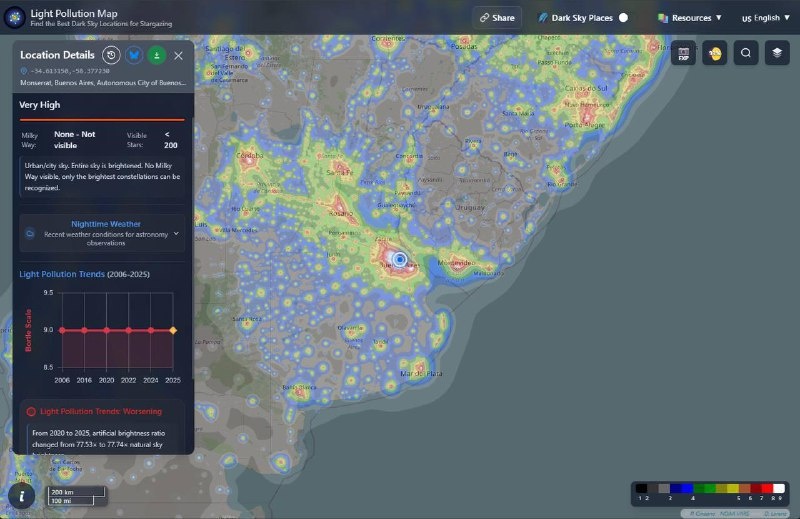 Выбираем лучшие места для наблюдения за ночным небом: мы нашли карту, отображающую уровни светового загрязнения по всему миру