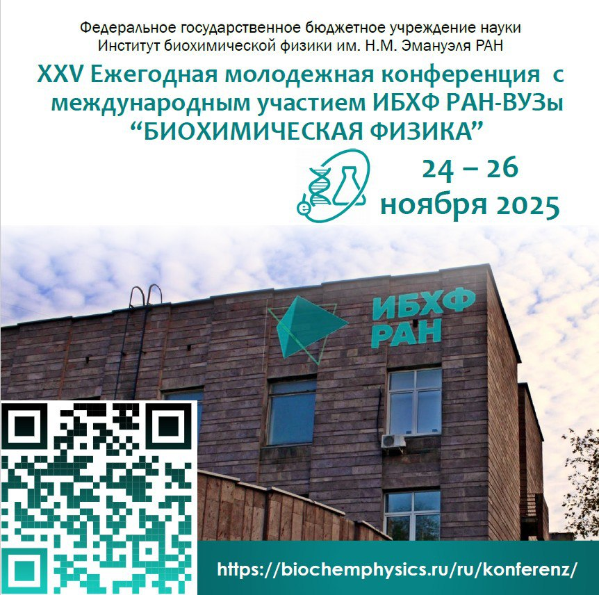 Приглашаем вас принять участие в ХХV Ежегодной молодежной конференции с международным участием ИБХФ РАН-ВУЗы “Биохимическая физика” 24-26 ноября 2025 г.