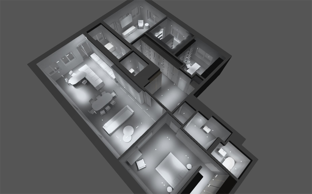 У нас в компании есть простое правило: первый светотехнический расчет мы делаем бесплатно. Неважно, принесете вы готовый дизайн-проект или просто набросок — мы смоделируем освещение в профессиональной программе Dialux всего за 1-2 дня. Если объяснять просто, Dialux — это как «симулятор света». Программа показывает, как будет выглядеть помещение или фасад при разных типах освещения, чтобы мы могли заранее устранить все проблемы — от темных углов до избыточной яркости. Такой подход уже не раз спасал наших клиентов от дорогостоящих ошибок, которые практически невозможно исправить после завершения ремонта. Недавно к нам обратился заказчик с готовым проектом квартиры и конкретным запросом: «Хочу, чтобы свет был и практичным, и уютным». При детальном анализе в Dialux мы обнаружили несколько проблем: общий пересвет в гостиной, недостаточное освещение рабочих зон на кухне и заметный дисбаланс между декоративной и функциональной подсветкой. Наши инженеры скорректировали расположение светильнико