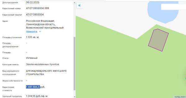 Название: Земельный участок из земель, государственная собственность на которые не разграничена, с кадастровым номером 47:07:0903004:399