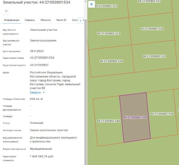 Название: Продажа земельного участка с кадастровым номером 44:27:050901:534, расположенного по адресу: город Кострома, поселок Гари