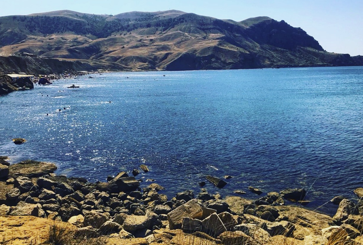 Бухта Капсель рядом с Судаком окружена холмами и тихим морем. На рассвете вода становится зеркальной и отражает небо.