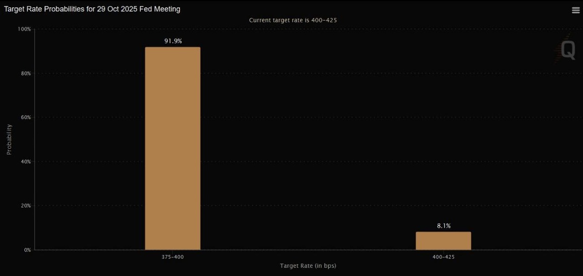 🚨 HOT TAKE: According to the CME, we've got a whopping 91.9% likelihood of a 25 bps rate hike this October