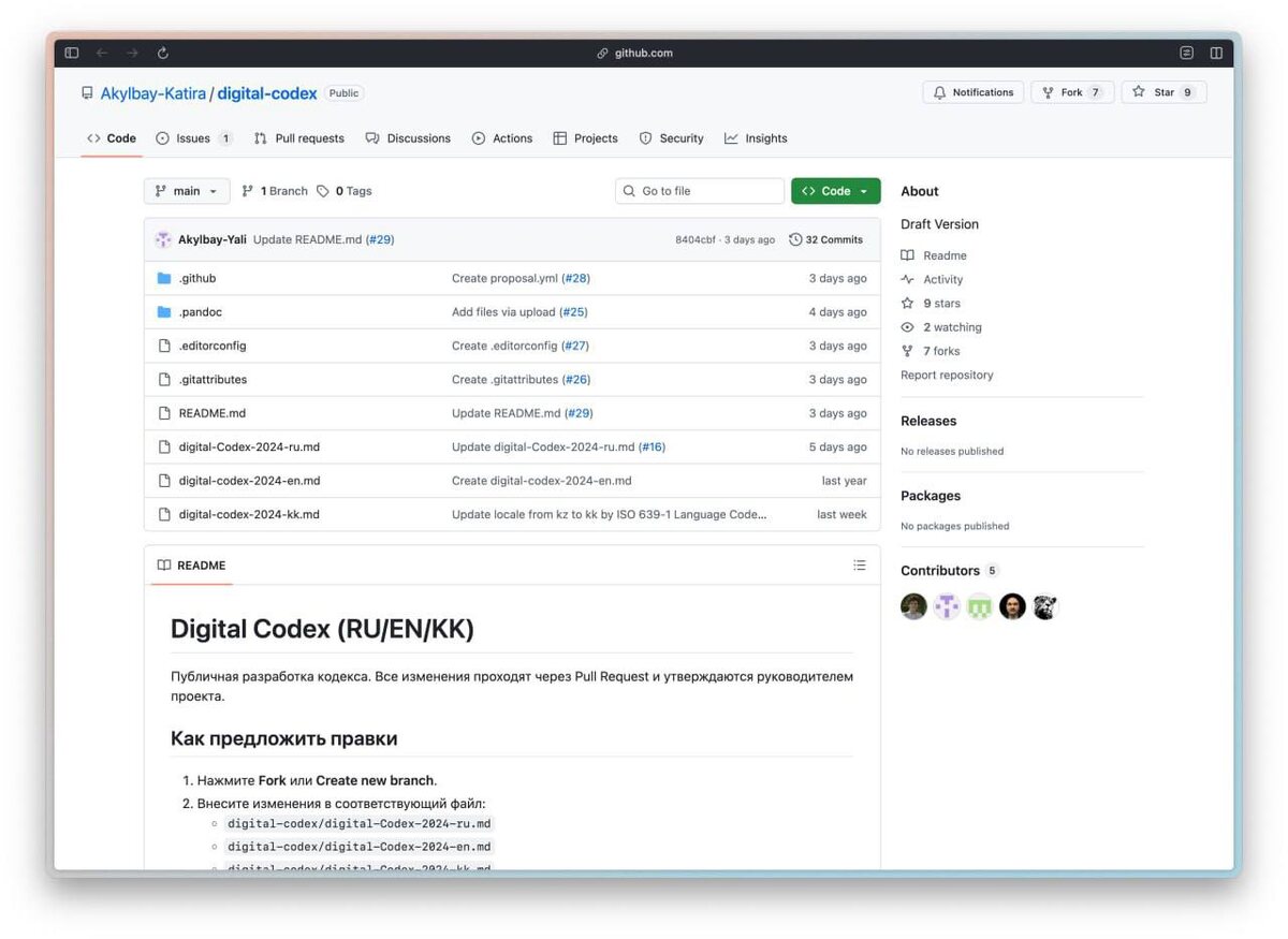 Казахстан завел страницу GitHub с Цифровым кодексом страны. Любой желающий может отправить pull request со своими идеями для регулирования IT-сектора. Кодекс должен помочь в разработке правил по работе с ИИ, большими данными и правами человека в сети. Идея хорошая, будет конечно много всякой ерунды предложено, но если все правильно оценить и использовать, то это позволит людям самостоятельно определить, как государство должно регулировать работу сервисов в интернете. Лайк, если хочешь, чтобы в твоей стране тоже так сделали ) #новости · @larchanka