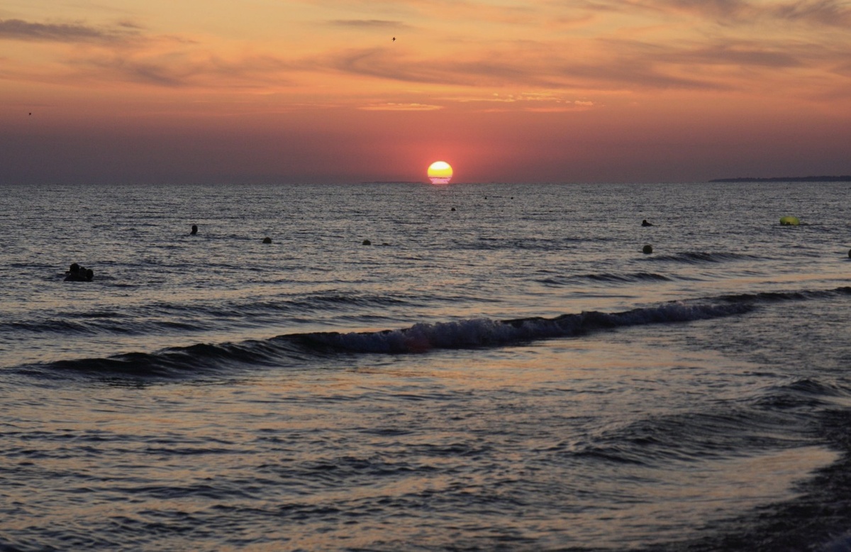 Пляжи под Анапы славятся широким песком и длинной линией горизонта. Вечером море здесь особенно спокойное.