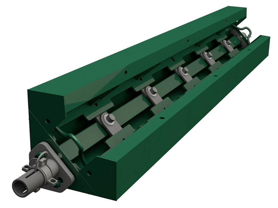 3. Распалубка (фишка!): Рабочий проворачивает гайку на шпинделе. Внутренний механизм сдвигает стороны угла, уменьшая габариты всей конструкции. Щиты отходят от бетона на 3-5 см, создавая зазор.