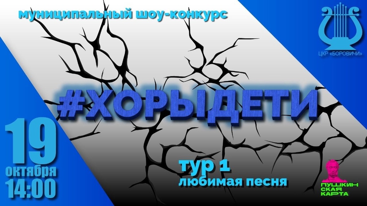 🆕🌟Впервые в Боровичах проводится муниципальный ШОУ-КОНКУРС "#ХорыДети"! 🔥Это уникальное событие призвано объединить юные таланты города в захватывающем поединке вокального мастерства. ⏩Конкурс пройдет в три этапа, каждый из которых посвящен определенной тематике, позволяющей участникам продемонстрировать свои творческие возможности и разносторонность репертуара. Первый этап – "Любимая песня🎶". Второй этап – "Патриотическая песня🎶" Третий этап – "Песня из кинофильма🎶" 🤗Ждем вас на церемонии открытия и первом этапе конкурса 19 октября в 14:00 в ЦКР "Боровичи" ГДК . 🤩Приходите поддержать юные таланты Боровичей и насладиться прекрасной музыкой! Мероприятие обещает быть зрелищным и незабываемым, полным ярких эмоций и творческих открытий. 👇Стоимость- 300 руб. Билеты уже в продаже, возможна оплата по Пушкинской карте👇 https://clck.ru/3PfHpM #Пушкинскаякарта #ПоПушке_Боровичи #семейноцентричность