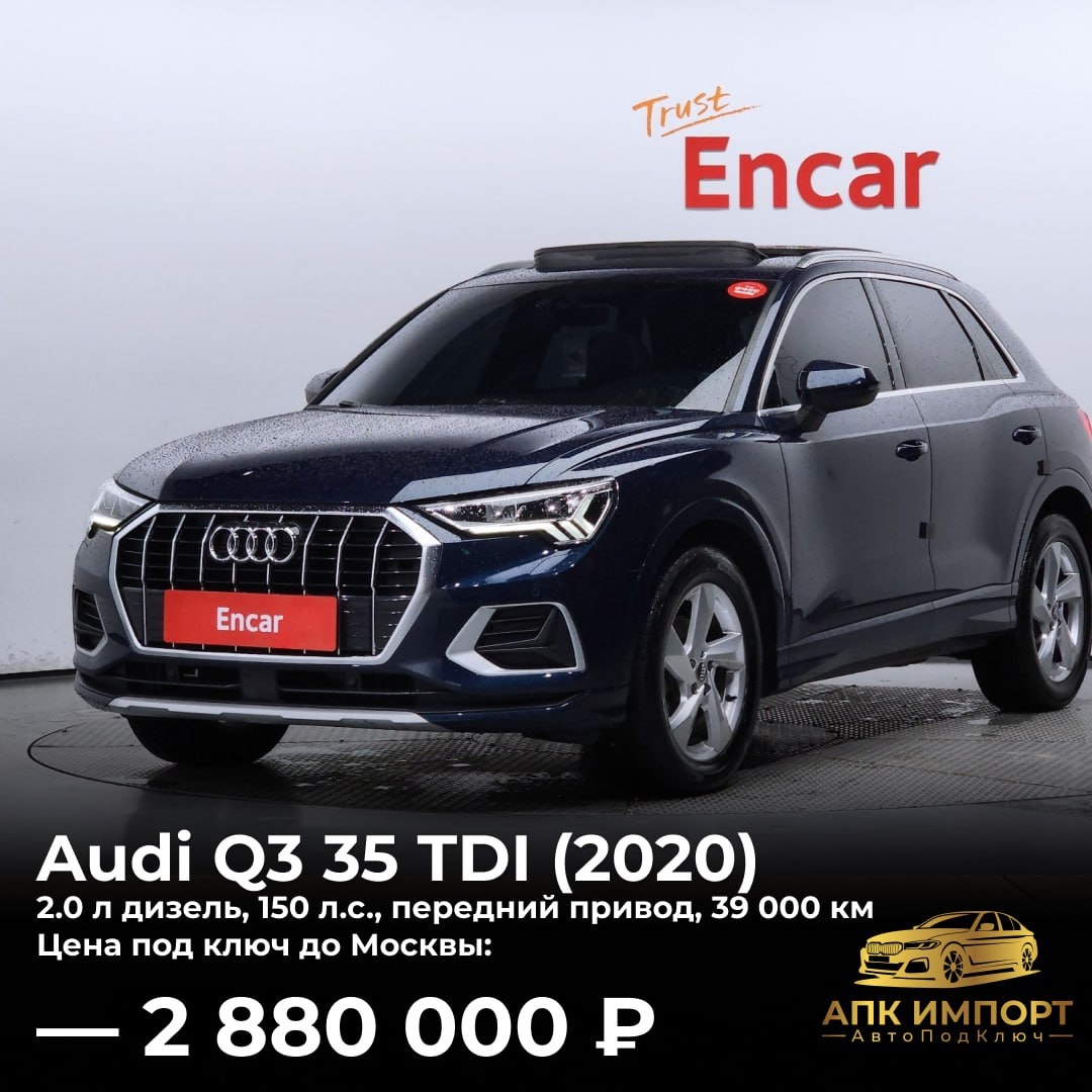 🚘 Audi Q3 35 TDI (Premium) 📍 Основные характеристики: 🔹 Год выпуска: 12/2020 🔹 Пробег: 39,655 км 🔹 Двигатель: 2.0 л дизель, 150 л.с. 🔹 Привод: передний 🔥 Несмотря на передний привод, Q3 отлично справляется с легким бездорожьем благодаря клиренсу в 170 мм и сбалансированной подвеске. ➡️ Комплектация Premium включает: светодиодные фары, мультимедиа с навигацией, заднюю камеру, парктроники, подогрев сидений, двухзонный климат-контроль, бесключевой доступ и люк. ⬇️ Больше фотографий в комментариях 💰 Цена: 2,880,000 рублей под ключ с доставкой до Москвы и полным комплектом документов! 🔗 Ссылка на объявление 🚗 Пишите в личные сообщения для консультации и заказа! 🇰🇷#изКореи #апкимпорт #Audi