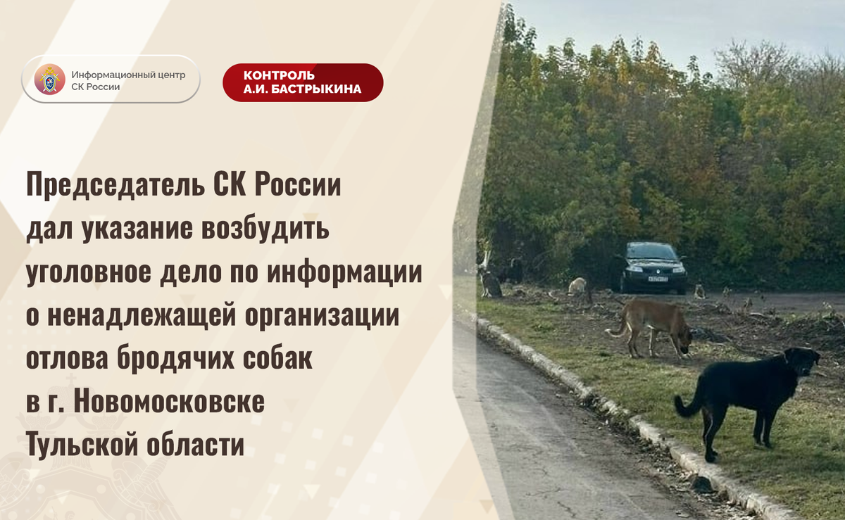 Председатель СК России дал указание возбудить уголовное дело по информации о ненадлежащей организации отлова бродячих собак в г. Новомосковске Тульской области