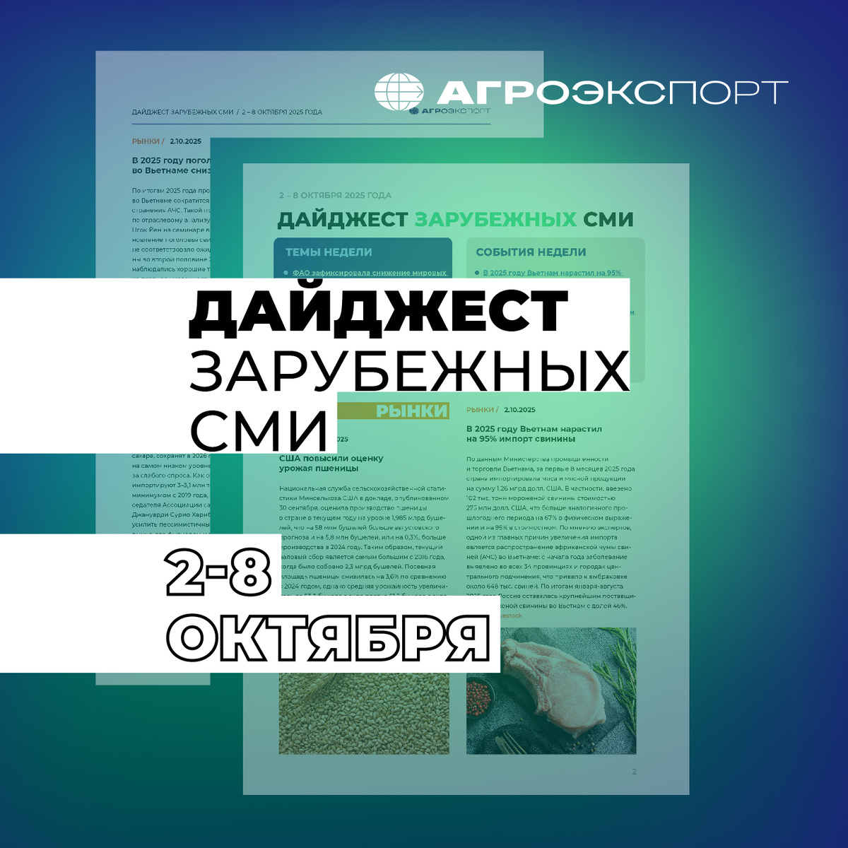 Дайджест зарубежных СМИ от «Агроэкспорта» (2 – 8 октября 2025 года)
