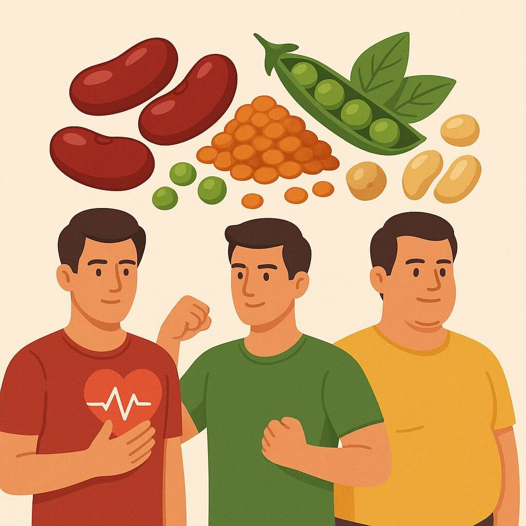 1. Сердечно-сосудистая система * Замена части красного и переработанного мяса бобовыми (исследование *BeanMan, 2025*) за 6 недель снижала общий и «плохой» (LDL) холестерин и массу тела. * Метаанализы показывают, что регулярное потребление около 150–200 г в день снижает LDL примерно на 5–10 %. 2. Рак простаты * По данным метаанализа Li и соавт. (2017), каждые дополнительные 20 г бобовых в день связаны со снижением риска рака простаты на 3–4 %. * Предполагаемые механизмы: изофлавоны, клетчатка и антиоксиданты, влияющие на гормональный баланс и рост клеток. * Однако это в основном наблюдательные исследования, прямой причинно-следственной связи пока не доказано. 3. Метаболизм * У мужчин с лишним весом и преддиабетом включение бобовых улучшает показатели глюкозы и липидного профиля. * Растительный белок помогает сохранять мышечную массу при снижении веса.