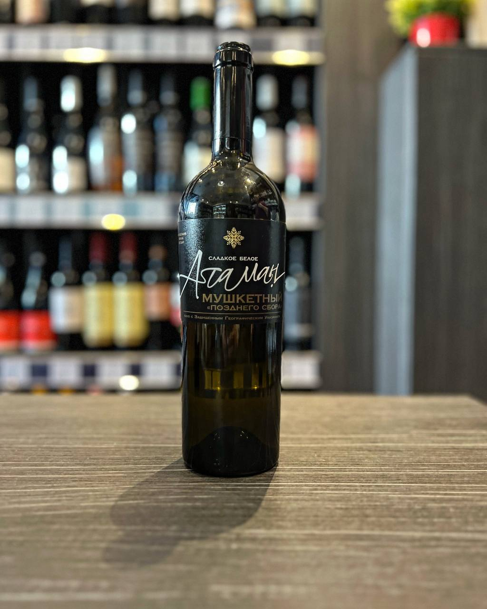 Белое, сладкое вино "Атаман" изготовлено из винограда автохтонного сорта Мушкетный (разновидность Муската), выращенного на собственных виноградниках винодельни "Вилла Звезда" в междуречье рек Сал и Дон.