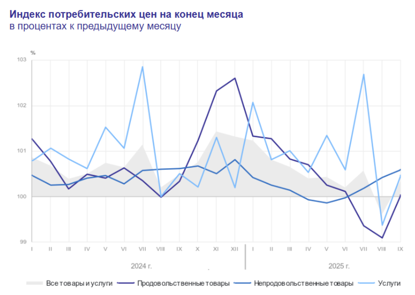 Инфляция в начале октября — недельные темпы продолжают ускоряться. Месячный пересчёт сентября даёт положительный сигнал ЦБ.