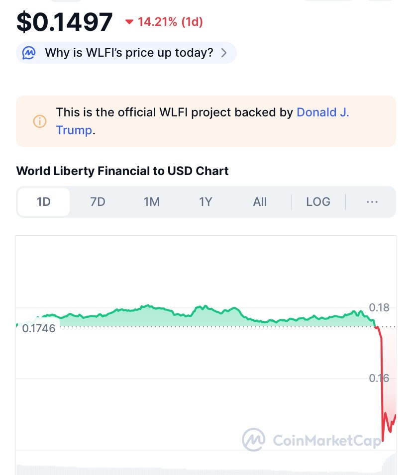 Trump’s WLFI token tanks 14% on NOBEL Peace Prize fail Trump family owns 22.5 billion $WLFI tokens, 22.5% of total supply Zach Witkoff, son of Trump special envoy Steve, is a co-founder of the project