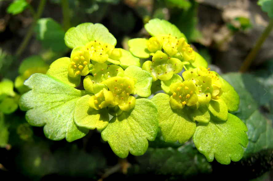 Селезёночник очерёднолистный - это небольшое многолетнее травянистое растение, принадлежащее к семейству Камнеломковых (Saxifragaceae). Его легко узнать по характерному облику и местообитаниям. Морфологические признаки: Высота: Обычно достигает высоты от 5 до 20 см, иногда до 25 см. Стебель: Прямой, простой или слабо ветвистый, сочный, полупрозрачный, красноватый у основания. Листья:Прикорневые: Округлые или почковидные, длинночерешковые, обычно отмирают к моменту цветения.