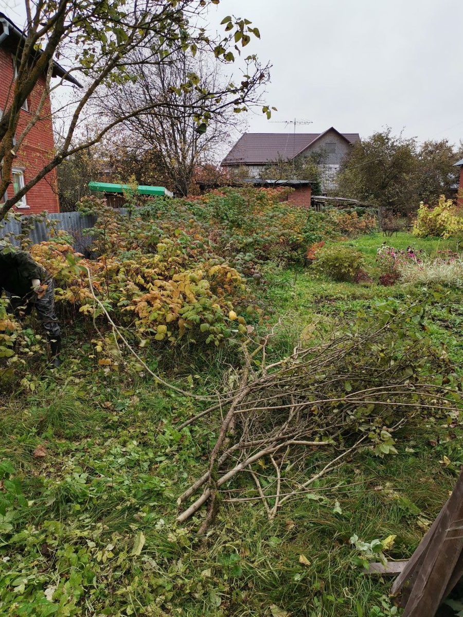 Работа дня. Обустройство малинника. Выкорчевка мелких и мало плодных сортов, пересадка, подвязка и подкормка. Вид до и после завершения работы.