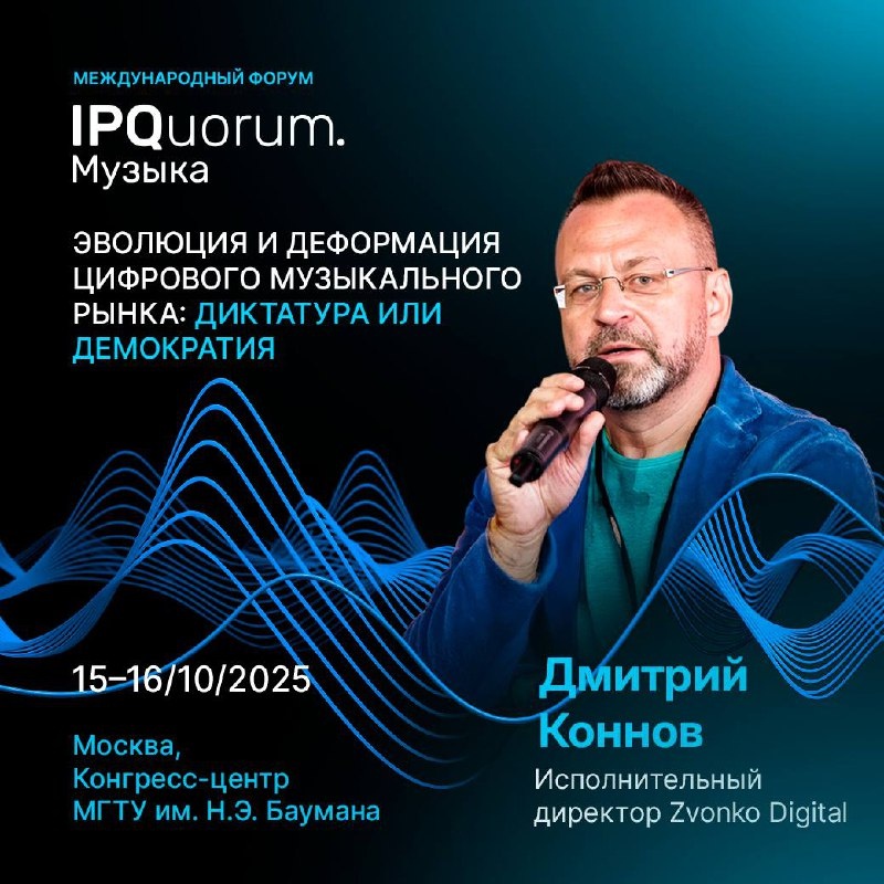 Будущее музыки выглядит перспективным, но здесь есть определённые вызовы. С одной стороны, будет сложно конкурировать с ИИ, который технически может играть и петь лучше человека, с другой — именно живое выступление, эмоциональная подача останутся уникальными человеческими качествами. Такое мнение высказал Дмитрий Коннов — исполнительный директор ZVONKO digital и управляющий партнер ZVONKO group, ранее работавший в MTV Russia и возглавлявший Universal Music Russia. Ещё Дмитрий – спикер Международного форума IPQuorum.Музыка, где он выступит в сессии «Эволюция и деформация цифрового музыкального рынка: диктатура или демократия» и станет модератором сессии «От DIY до издательств: реальные кейсы». Накануне форума мы побеседовали с экспертом. Он поделился видением трендов российского музыкального рынка, рассказал, какое место в нём занимают нейросети, и объяснил, почему искусственный интеллект не заменит живую музыку и даже станет своеобразным тестом на талант. Читайте в интервью. Специал