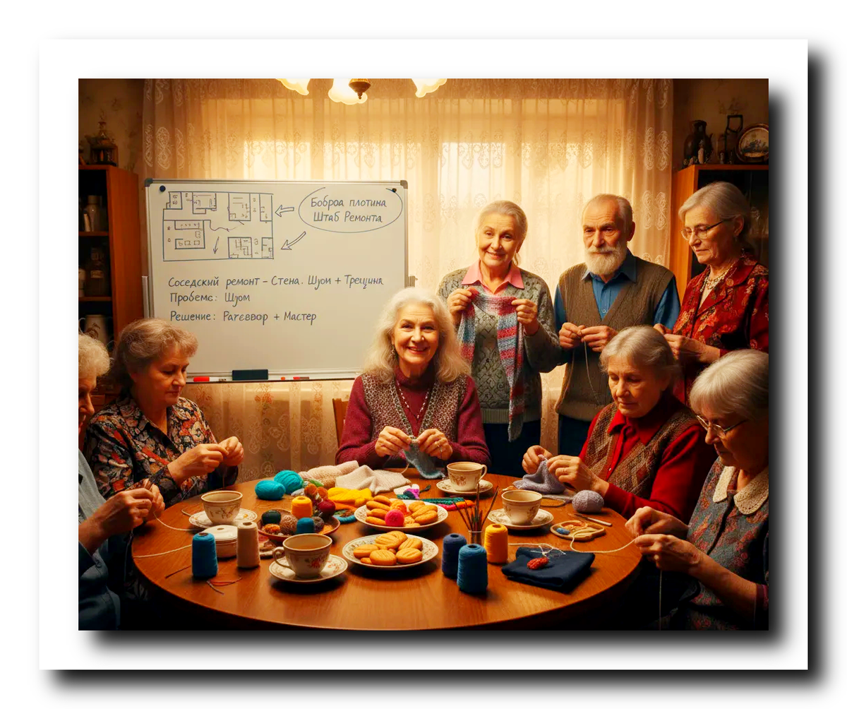 В этой статье я, Владимир Николаевич, старожил и в прошлом строитель, расскажу о неформальном клубе нашего ТСЖ «Боброва плотина» — творческих посиделках у МарьИванны. За внешней безобидностью вязания и вышивания скрывается мощный информационный хаб, где переплетаются сплетни, судьбы и… реальные проблемы с ремонтом. Я объясню, почему каждому новому жильцу рано или поздно стоит «нырнуть» в этот водоворот, как извлечь из него практическую пользу и не утонуть в потоке домыслов. Вы узнаете, как обсуждение о соседском ремонте помог разрешить серьезный конфликт, а также получите несколько житейских лайфхаков, которые помогут сберечь нервы и бюджет при обустройстве своего гнездышка.