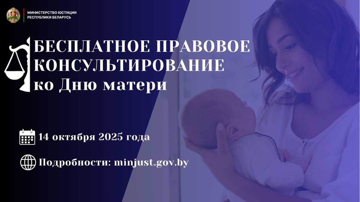 💪💪💪💪💪💪💪💪💪 ⚡️14 октября 2025 года с 10:00 до 12:00 Министерство юстиции проведет в формате прямой телефонной линии акцию по бесплатному консультированию граждан, приуроченную ко Дню матери. В ходе консультирования граждане смогут получить ответы на интересующие их вопросы, не требующие ознакомления с документами, в сферах: ◾️нотариальной деятельности – тел. 8 (017) 200 89 71; ◾️регистрации актов гражданского состояния – тел. 8 (017) 200 06 18; ◾️легализации (апостилирования) официальных документов, составленных на территории Республики Беларусь, – тел. 8 (017) 211 01 93; ◾️принудительного исполнения исполнительных документов – тел. 8 (017) 210 40 49. Также участие в акции примут специалисты главных управлений юстиции облисполкомов и Мингорисполкома, адвокаты, нотариусы. 🌱Подробности на нашем сайте minjust.gov.by 💪💪💪💪| Сайт | Telegram | Instagram | Fb | X | Ok | VK | YouTube