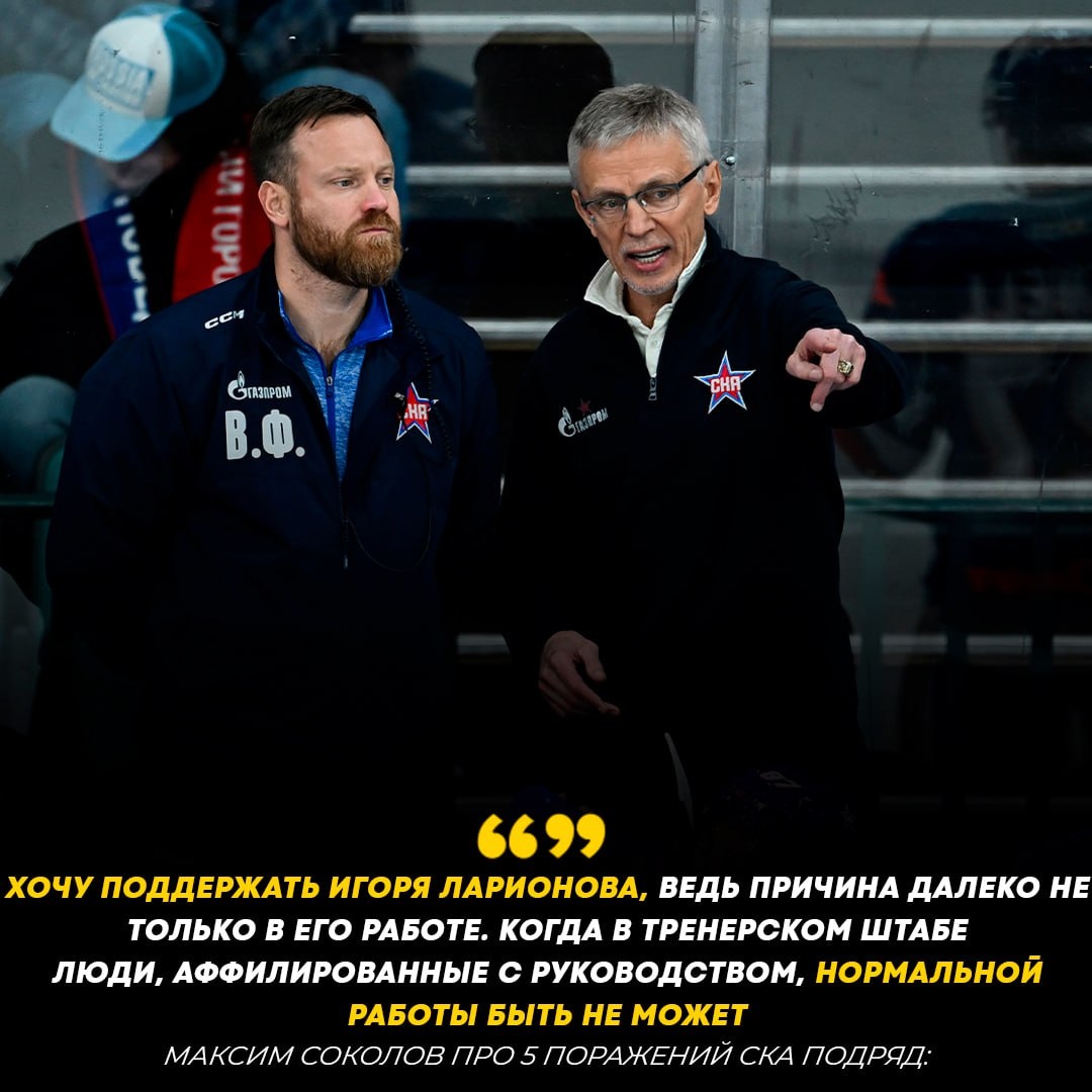 🔥🇷🇺 Максим Соколов высказался о неудачной игре СКА в последних матчах КХЛ. 📊 Команда под руководством Игоря Ларионова проиграла 5 матчей подряд и занимает 9-е место на Западе с 13 баллами в 13 встречах.