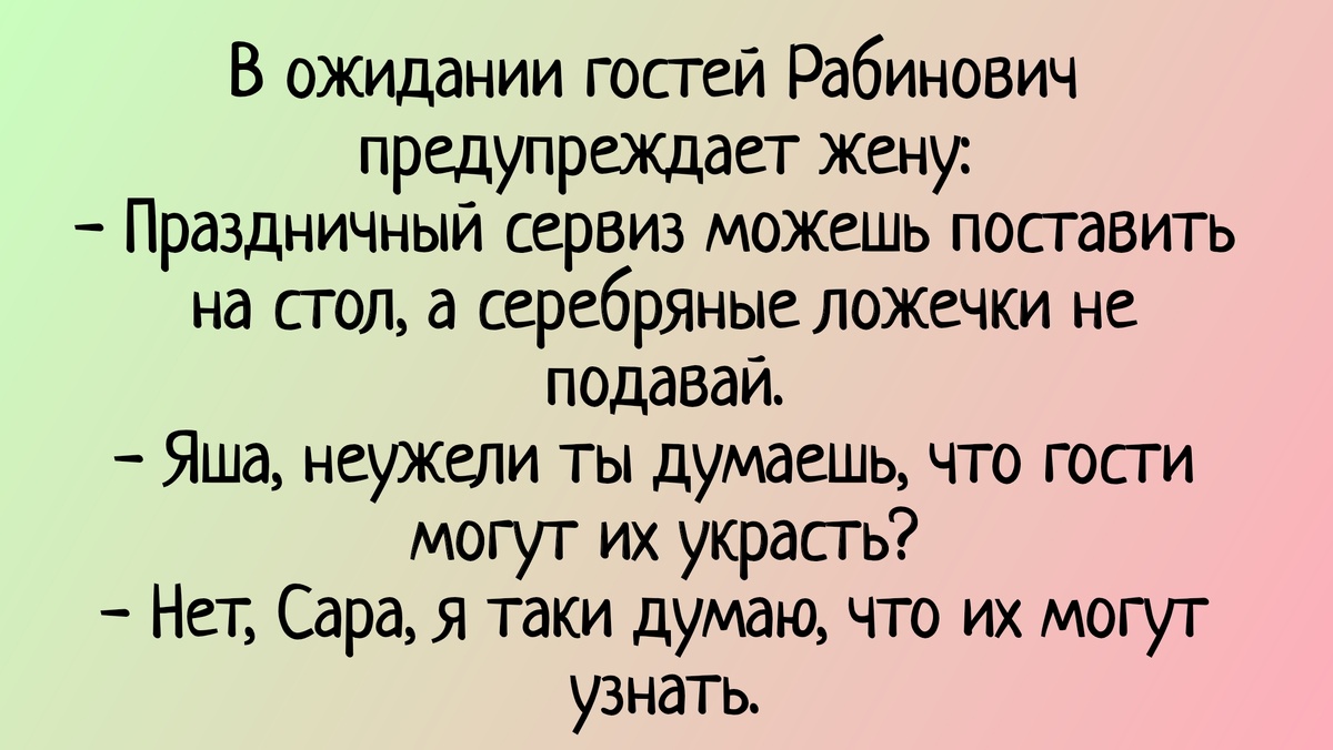 - Запомни, ничего сегодня не покупай в лавке у Рабиновичей.