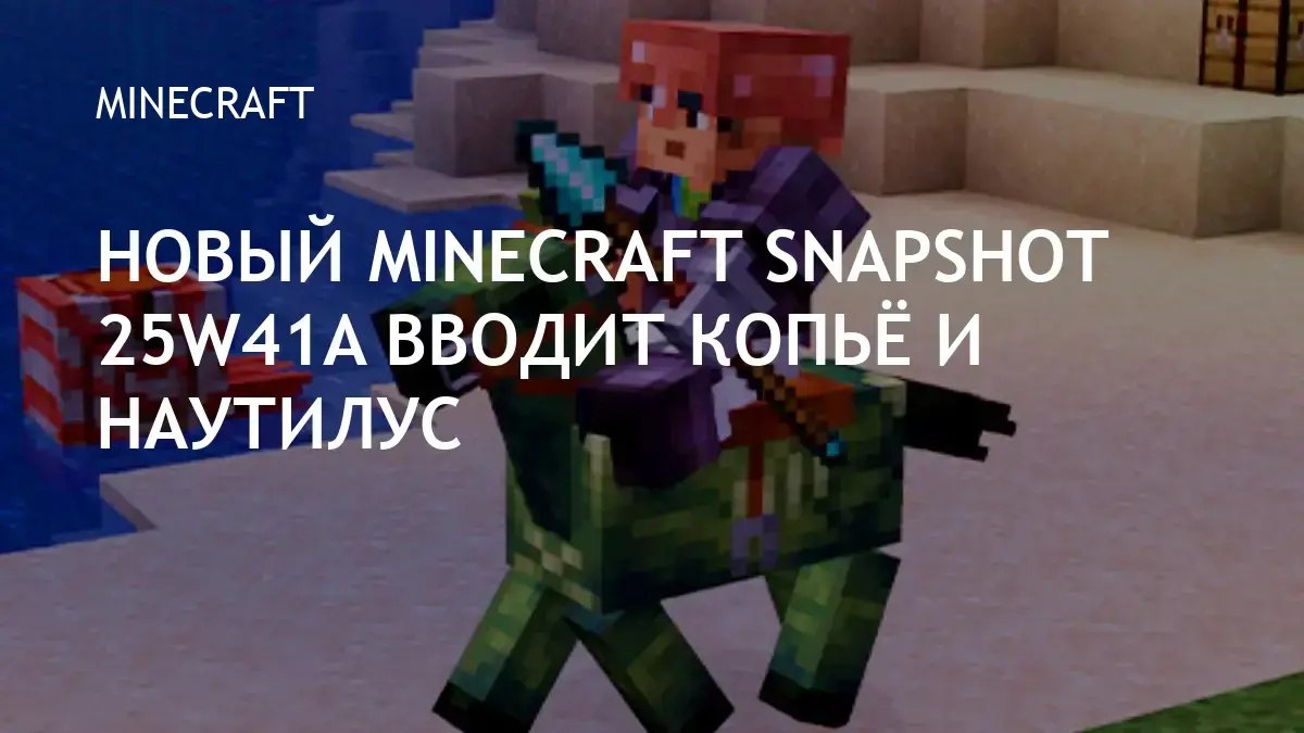 Новый снапшот Minecraft 25w41a уже на Java — и это бомба! Появился наутилус как подводный маунт, новое копьё с уколом, зарядом и рывком, а