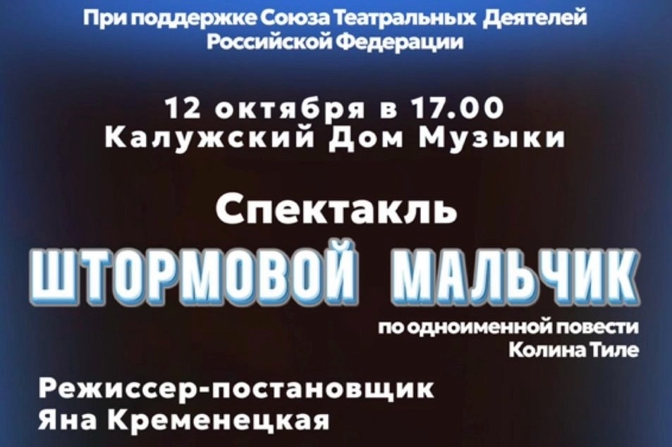 12 октября в 17:00 в Калужском доме музыки состоится премьера спектакля «Штормовой мальчик» — постановки, которая обещает стать одним из самых эмоционально насыщенных событий осени. Зрителей ждёт глубокая и трогательная история о человеке и природе, о внутренней силе и способности сохранять человечность даже в самых суровых обстоятельствах. Спектакль поставлен по мотивам одноимённой пьесы Колина Тилле, британского писателя, чьи произведения давно вошли в классику современной детской и юношеской литературы. Его творчество наполнено философией гуманизма, вниманием к внутреннему миру человека и бережным отношением к природе. Не случайно «Штормовой мальчик» стал одним из самых известных его произведений — история о мальчике, живущем у моря, и его дружбе с пеликаном стала символом верности, сострадания и силы духа. Режиссёром-постановщиком спектакля выступила Яна Кременецкая, также исполнившая обязанности хореографа. В её интерпретации история Колина Тилле превращается в поэтичную притчу о
