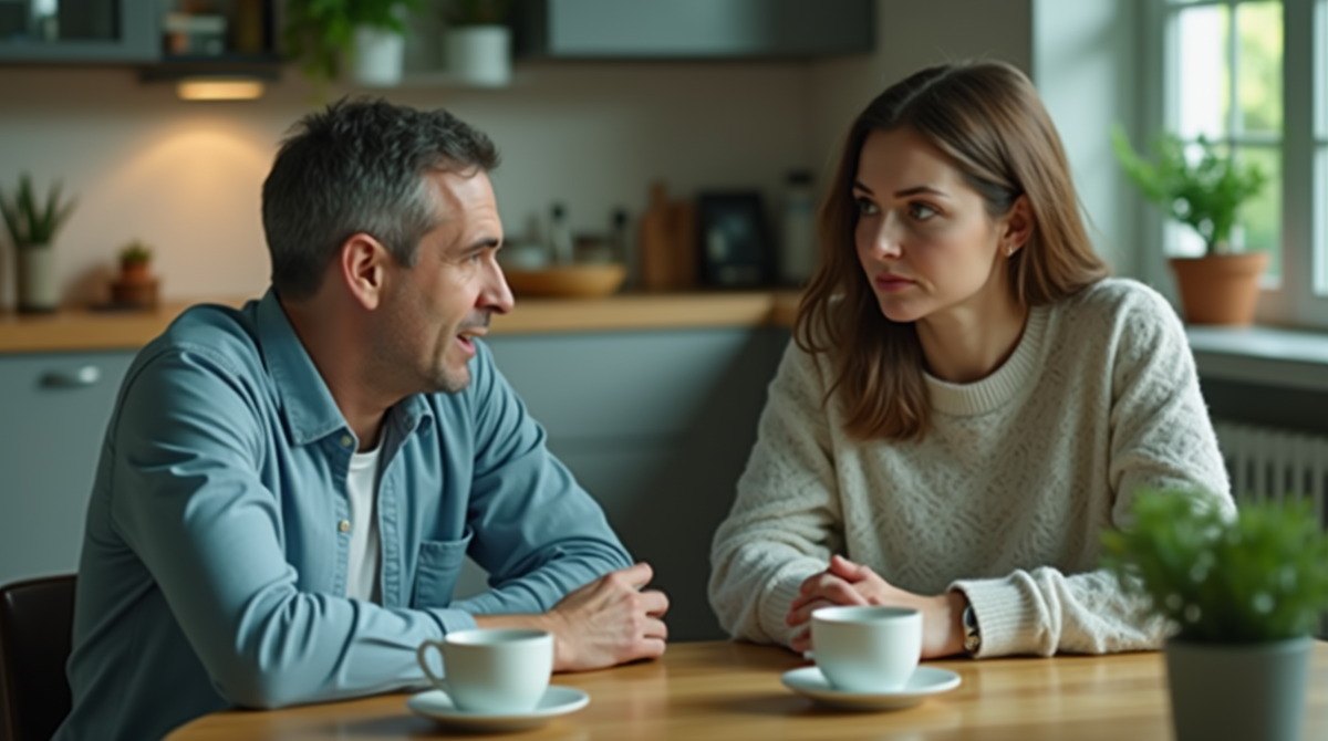 Олег сидел напротив, уперев локти в кухонный стол. Его тёмные глаза, обычно такие тёплые, сейчас смотрели с какой-то смесью вызова и усталости. Он провёл рукой по коротким волосам, словно собираясь с мыслями.